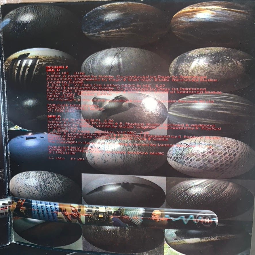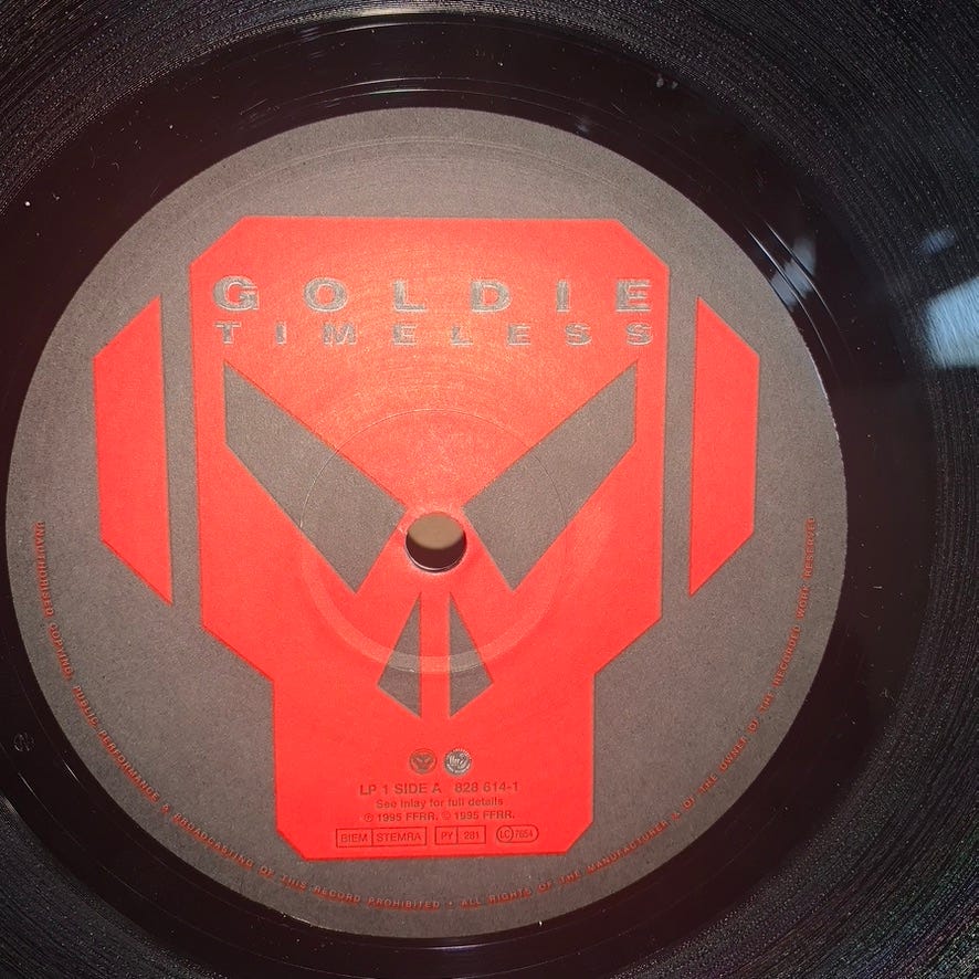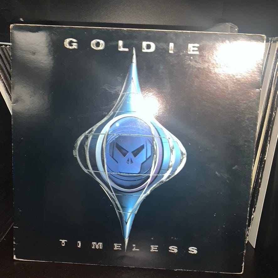 In 1997 (I think?) I got to see Goldie perform at the old Black Cat in DC, on his Timeless tour. I think Diane Charlemagne even sang. Eventually I got a copy of the album on vinyl, after taking care of @bensonn1’s record collection for a few years. I sorted all his records, cataloged them on Discogs for him, and he said I could have any doubles that I found... and ‘Timeless’ was one of them.